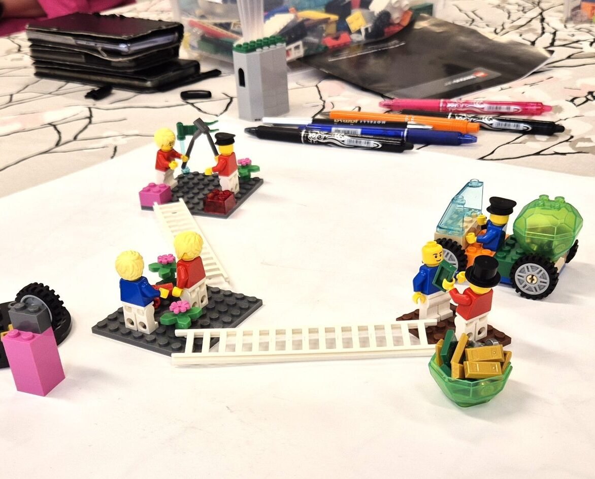 - Kolmiulotteinen mallintaminen: Osallistujat rakentavat malleja, jotka kuvaavat esimerkiksi organisaation nykytilaa, tavoitteita, haasteita tai tulevaisuuden suuntia.